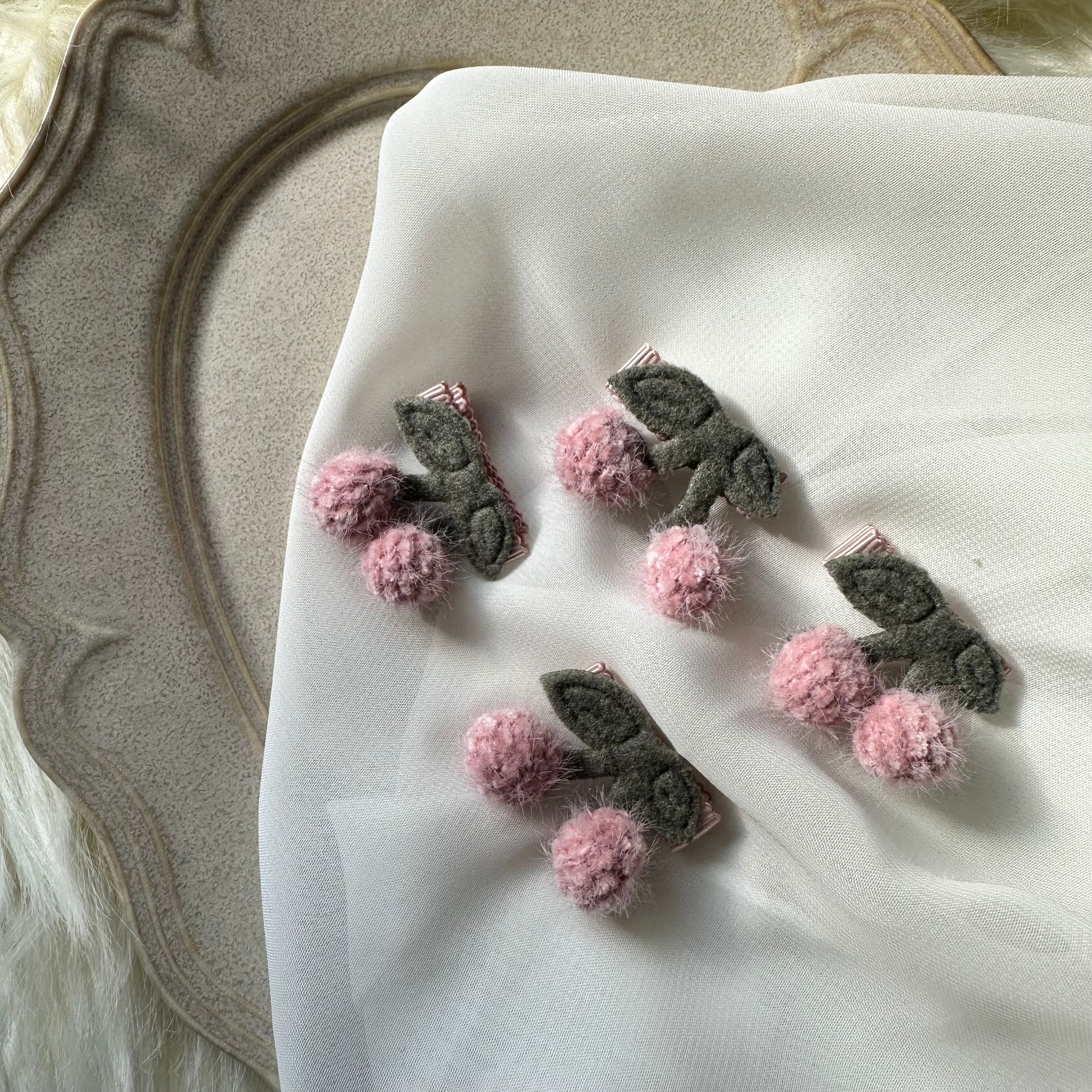 ふわふわの質感が可愛いさくらんぼヘアクリップ